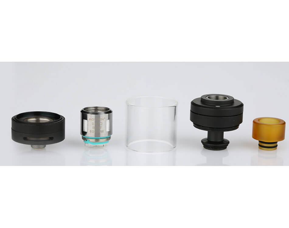 Die hochwertigen Materialien und die gradlinige Bauart versprechen ein sehr zufriedenstellendes Produkt, dass mit einem 510er Drip Tip verkauft und in drei unterschiedlichen Farben angeboten wird.