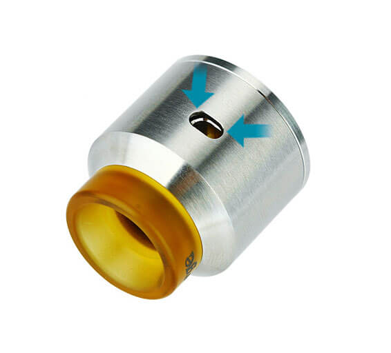 Sein Durchmesser beträgt 24mm, bei einer Höhe von 26mm. Er erscheint optisch eher schlicht und wurde aus hochwertigem Edelstahl gefertigt. Dank des Wide Bore Drip Tips wird auch beim stärkeren Luftziehen die Hitze nicht zu sehr abgegeben.