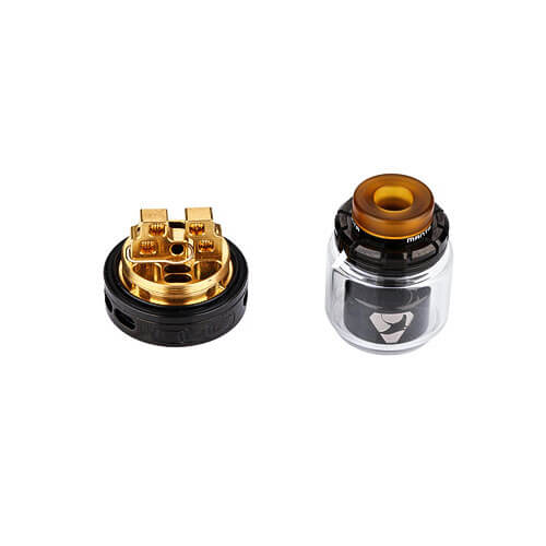 Der Manta RTA Selbstwickler Tank von Advken besitzt einen Durchmesser von 24 mm und verfügt über ein 5ml Tankglas, welches auch durch ein 3.5ml Ersatzglas ausgetauscht werden kann. Beide Varianten lassen sich von oben befüllen.