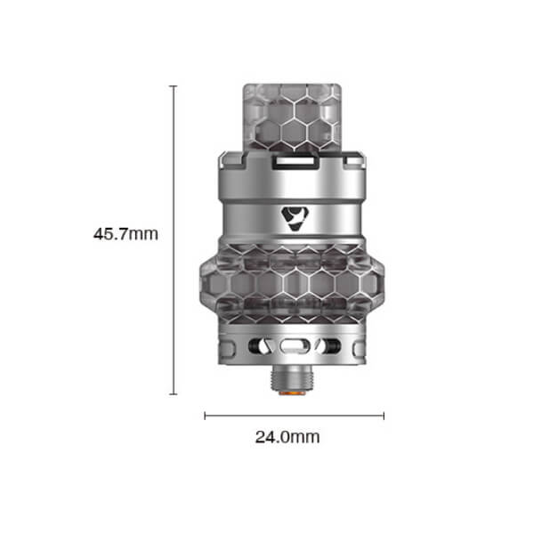 Das visuelle Erscheinungsbild ist prägnant, auffällig und modern gestaltet. Hochwertig und sauber wurde der aus Edelstahl und Pyrex-Glas bestehende Verdampfer gefertigt. Bei einer Größe von 45.7mm nebst einem Durchmesser von 24mm ist er anschmiegsam und komfortabel in der Handhabung.