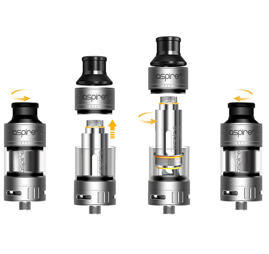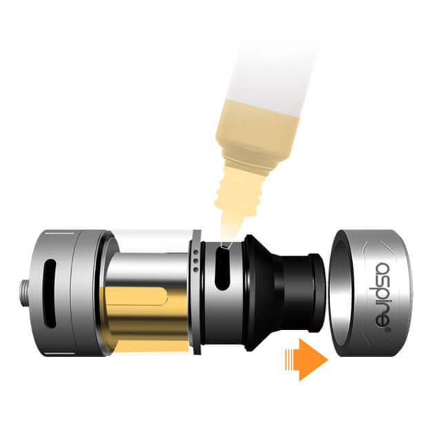 Der Tank bringt ein nettes Füllvolumen von 3ml mit. Zusätzlich beinhaltet der Lieferumfang ein 4.2ml Ersatzglas. Das Befüllen mit Liquid gestaltet sich denkbar einfach, da die bequeme Side-Fill Variante angewandt wird. Dazu die Top Cap entfernen, so dass das Einfüllloch offen liegt, sogleich kann das Lieblingsliquid nachgefüllt werden.