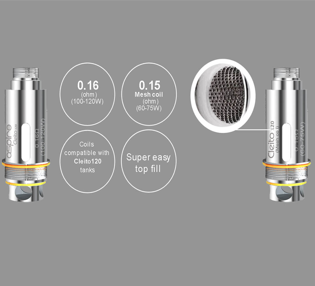 Der Cleito Verdampferkopf mit 0.16 Ohm / 100W-120W bekommt eine neue Version dazu. Der 0.15 Ohm Mesh-Coil / 60W-75W kann als Alternative genutzt werden und liefert ebenfalls klaren Geschmack, gepaart mit ordentlich Dampf.