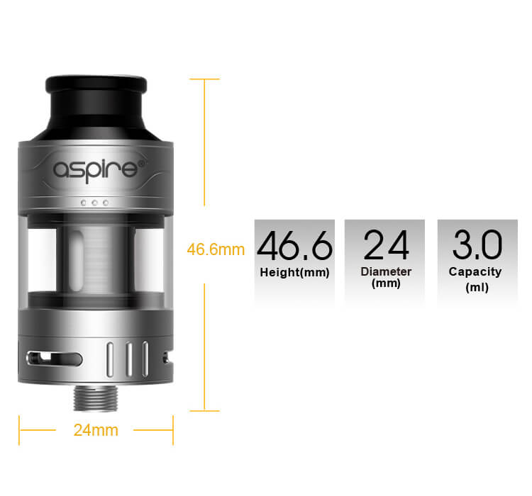 Aspires Cleito Pro ist ein besonders handlicher und leicht zu bedienender Verdampfer mit den Maßen 46.6mm x 24mm.