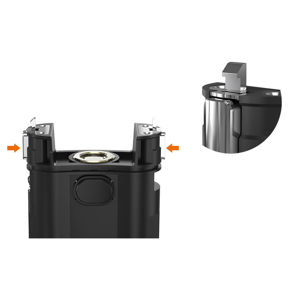 Die 5.5ml Cartridge kann benutzerfreundlich von unten mit Liquid versorgt werden. Der Pod wird mit austauschbaren Verdampferköpfen verwendet. Diese 0.25 Ohm Coils liefern einen ausgezeichneten Geschmack und müssen statt geschraubt lediglich nur gesteckt werden, so dass auch der Coil-Wechsel in Windeseile erledigt werden kann.