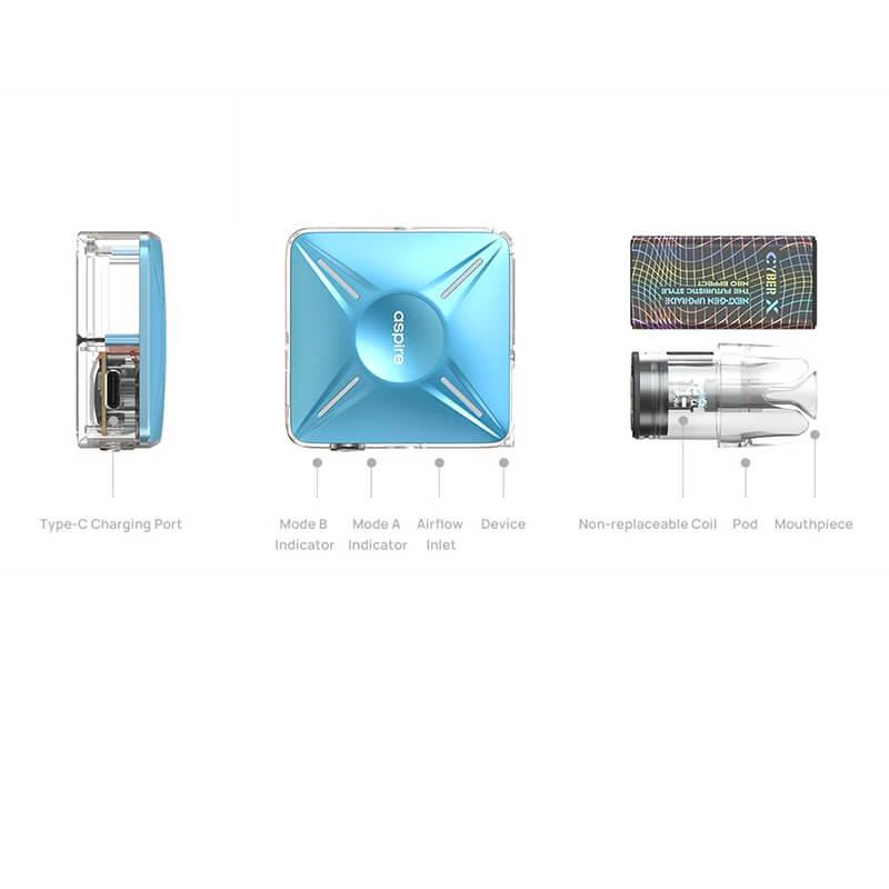Aspires Cyber X Kit ist ein kleines, tragbares E-Zigarettenkit, welches sich an die MTL und RDL Dampferwelt richtet. Mit dem auffallend frischen Design sorgt es für Begeisterung.
