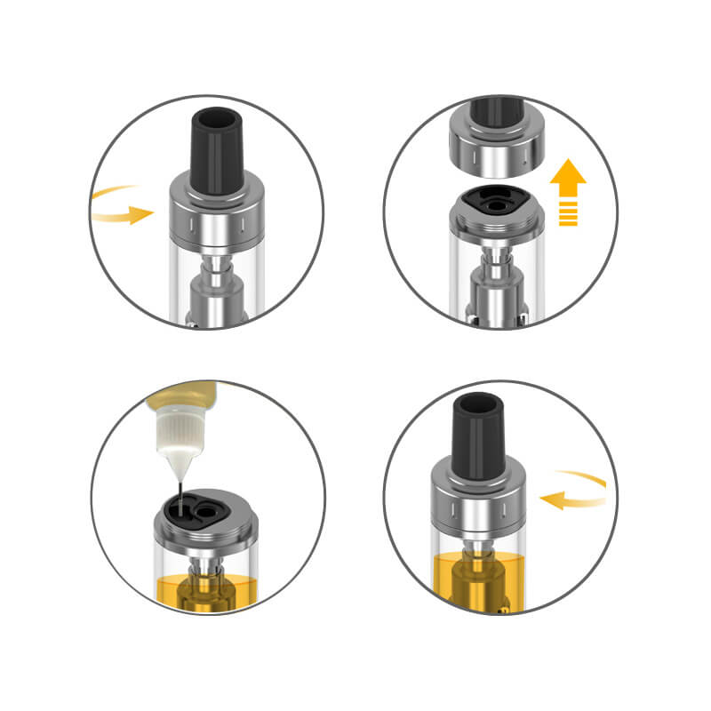 Der K Lite Tank passt sich mit seiner schlanken Form dem minimalistischem Gesamtbild perfekt an. Er verfügt über ein 2ml Tankvolumen mit Kindersicherung. Das Nachfüllen (TopFill) stellt keinerlei Probleme da und ist schnell erledigt. Einfach die Cap abschrauben, das bevorzugte Liquid wählen und die Flaschenspitze durch den Füllschlitz schieben, fertig. Das Wechseln der Coils (1.6 Ohm / 1.8 Ohm) ist ähnlich simpel, der Austausch erfolgt nach dem Abschrauben der Base.