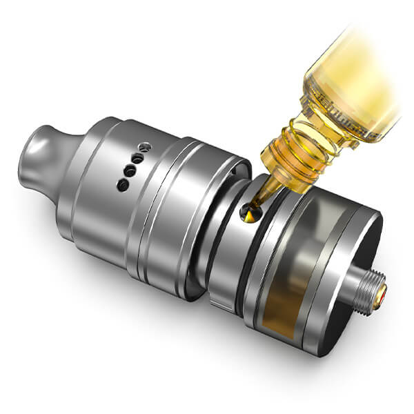 Er kann vielseitig eingesetzt werden, mal als herkömmlicher Verdampfer, mal als Tröpfler. Ein 3.5ml Tank steht bereit und kann bequem seitlich befüllt werden.