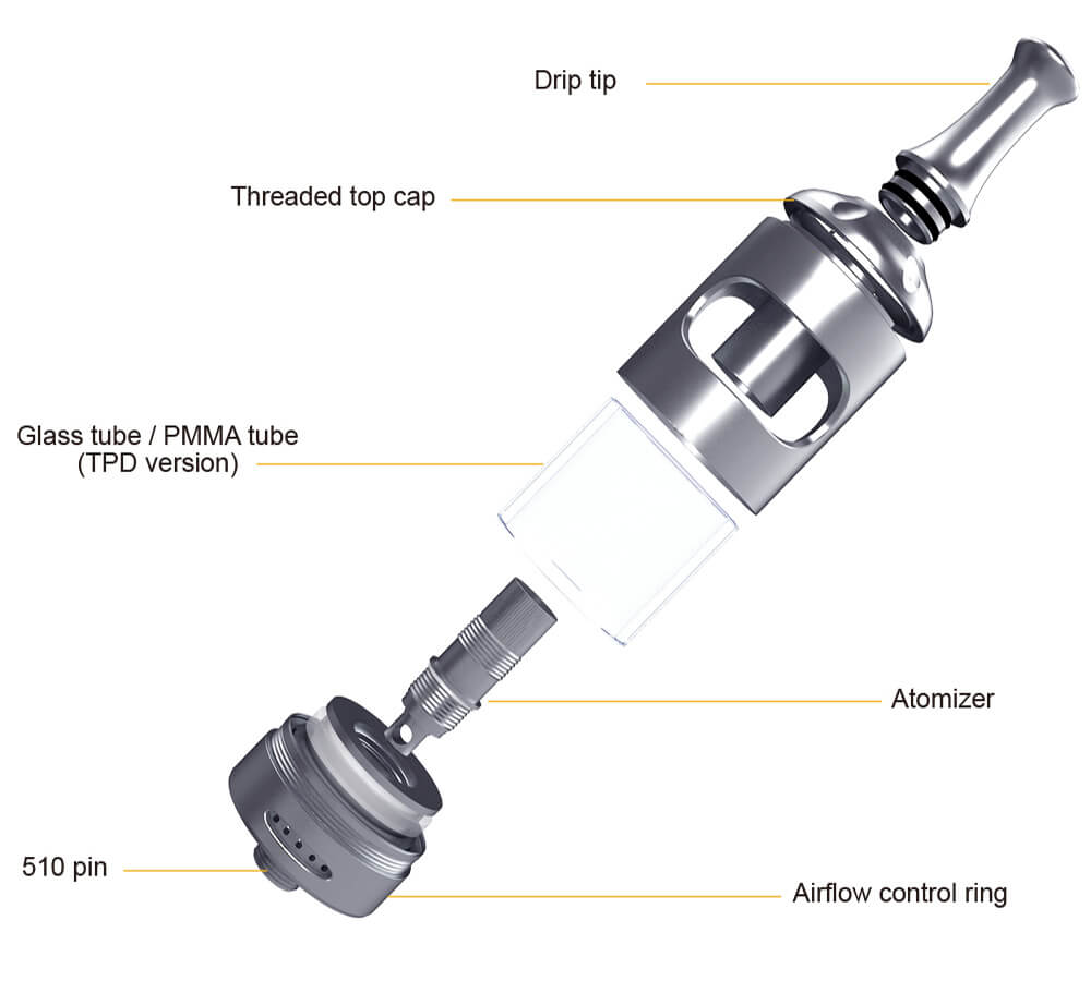 Im Verdampfer können alle BVC-Verdampferköpfe genutzt werden. Die Coils verfügen über einen Widerstand von 0.4Ohm – 1.8Ohm / 7W-28W, so dass sowohl DL-Nutzer als auch MTL-Fans auf ihre Kosten kommen.