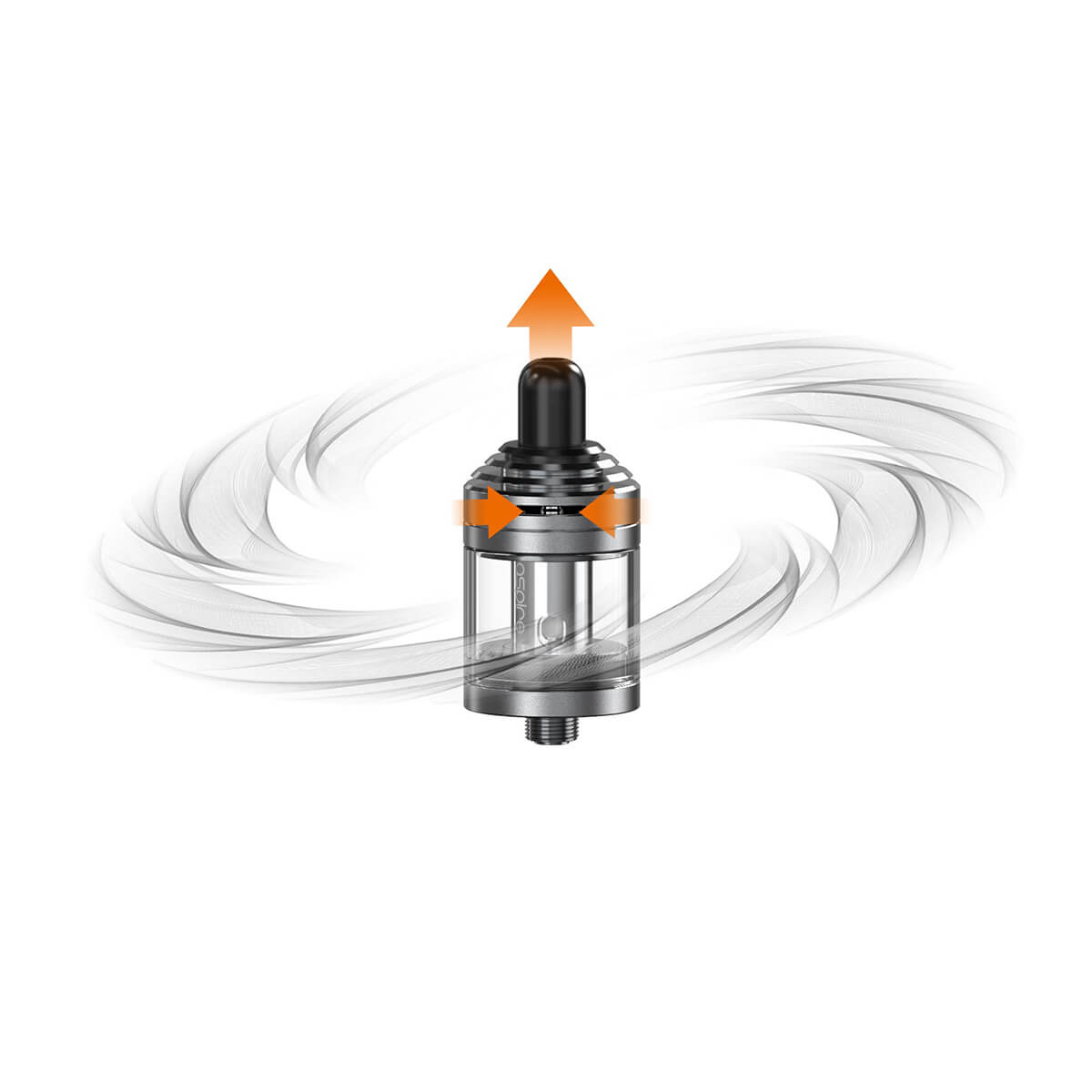 Die obenliegende Airflow macht den Verdampfer durch ihre Position fast gänzlich auslaufsicher und kann je nach Geschmack stufenlos justiert werden.