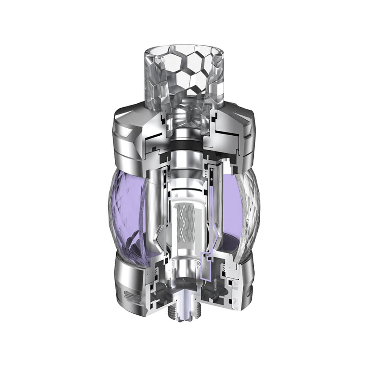 Die hochwertige Verarbeitung fällt positiv auf. Er besteht aus Edelstahl und Pyrexglas, ist 57cm lang und an der Base beträgt der Durchmesser 25mm. Das auffällige, stylische Design in Kombination mit dem Bubble-Glass Tube ist ein echter Eyecatcher. In Schwarz, Silber, Gunmetal oder Blau ist er erhältlich. Die PVD-Beschichtung macht den Atomizer resistenter gegen Hitze.