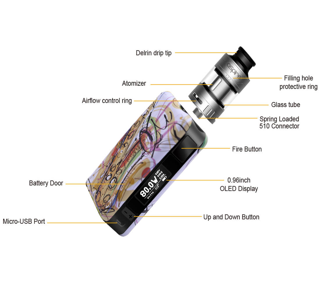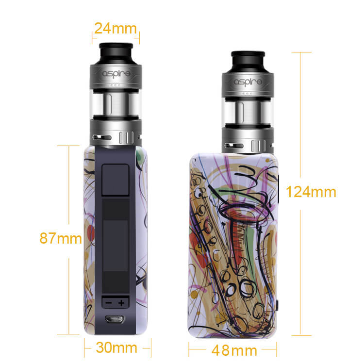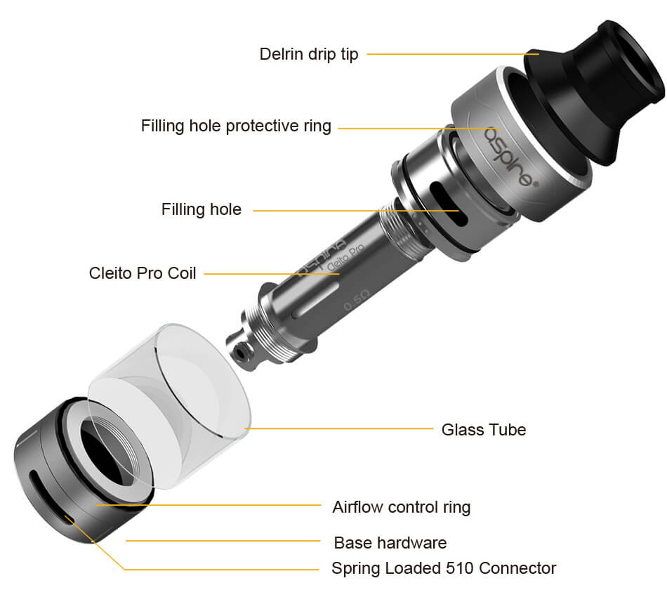 Kombiniert wird die Box mit dem Cleito Pro Verdampfer, der mit den Cleito Verdampferköpfen (0.5Ohm / 60W – 80W) verwendet wird. Diese sorgen in Zusammenarbeit mit der Bottom Airflow, die sich stufenlos einstellen lässt, für einen optimalen Gewinn von Geschmack und Dampf. Ein 3ml Tankvolumen wird mit dem Aspire–typischen SideFill-System betankt. Dies ist möglich, sobald die Cap das Einfüllloch freigibt. Ein weiteres 4.2ml Glass-Tube liegt der Lieferung bei. Für eine schnelle und hygienische Reinigung ist der Verdampfer komplett zerlegbar.