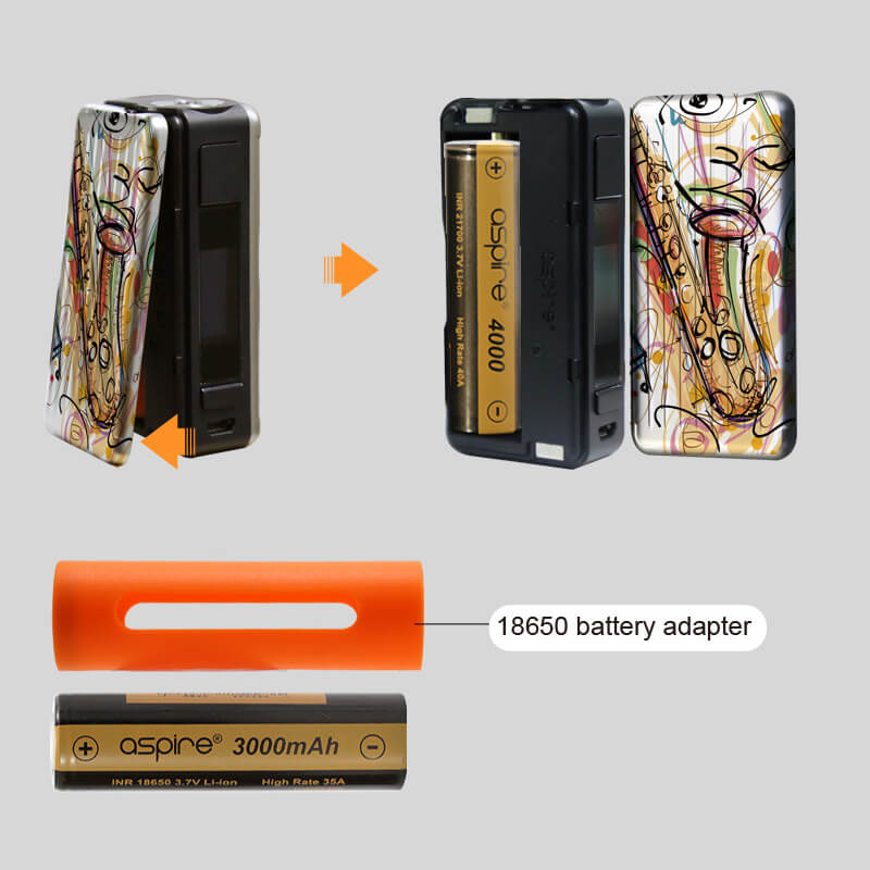 Auffällig bei dem Puxos Mod ist das moderne Design, welches vielfältig eingesetzt werden kann. Durch das große Panels-Angebot wird die Auswahl für die Optik nochmals erweitert. Die seitlichen Covers können nach Lust und Laune ausgetauscht werden. Zudem ist der Akkuträger handlich und bequem bedienbar. Facettenreich geht es bei der Wahl des verwendeten Akkus weiter. Dies ist für die maximale Wattleistung sehr entscheidend. Der Mod kann von einem 18650er (1W – 80W), einem 20700 oder einem 21700er (1W – 100W) Akku betrieben werden. Die Aufladung erfolgt durch ein 2A Schnelllade-System via USB. Ein 0.96 Zoll Display überträgt alle genutzten Werte (z.b. die Modis VV / VW / Bypass / CPS (C1/C2/C3) / TC (Ni/Ti/SS316L) und TCR (M1/M2/M3) klar und deutlich. Für einen simplen Umgang mit dem Puxos ist die Oberfläche sehr benutzerfreundlich gestaltet worden.
