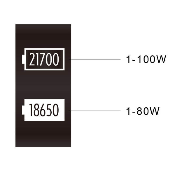 | Akkutyp: | 20700, 21700, 18650 |