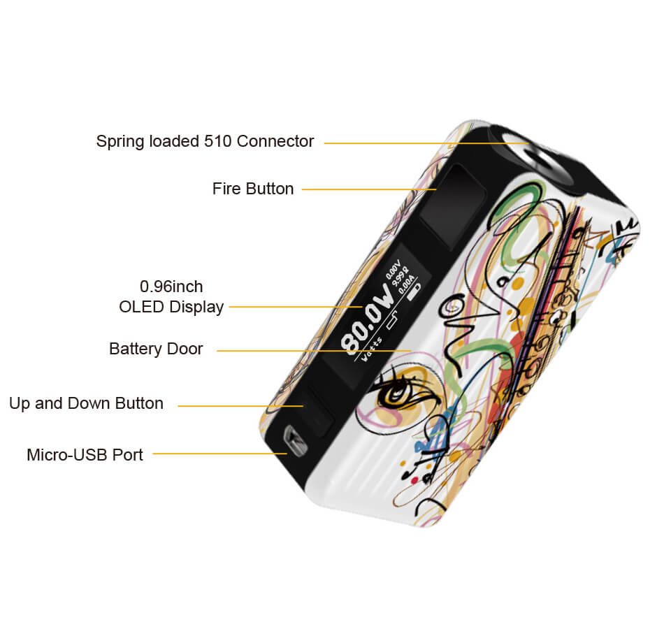 Der integrierter Chipsatz erlaubt das Arbeiten in 6 Modis (VV / VW / Bypass / CPS / TC und TCR). Diese und alle weiteren Werte können klar und deutlich auf dem 0.96 Zoll Bildschirm abgelesen werden. Die Navigation durch das Menü gestaltet sich aufgrund der benutzerfreundlichen Oberfläche besonders einfach.