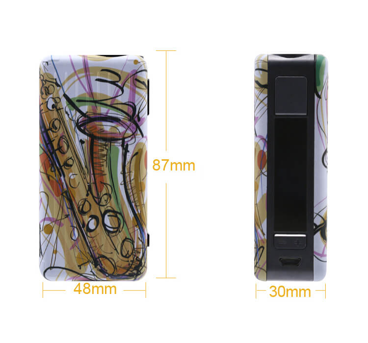 Innovativ und abwechslungsreich gestaltet sich Aspires aktuellster Mod. Der Puxos bietet ein breitgefächertes, visuelles Angebot. Die Seiten-Covers verzieren nicht nur sehr ansehnlich den Akkuträger, sie können auch individuell ausgewechselt werden, was einen wandelbaren Look ermöglicht. 87mm x 40mm x 30mm sind Maße, die den Mod anschmiegsam und ergonomisch in der Hand liegen lassen. Auch die Bedienelemente sich gut zugänglich und lassen sich leicht betätigen.