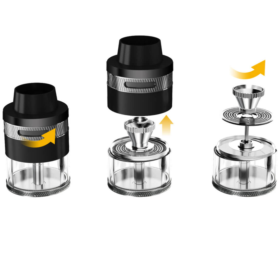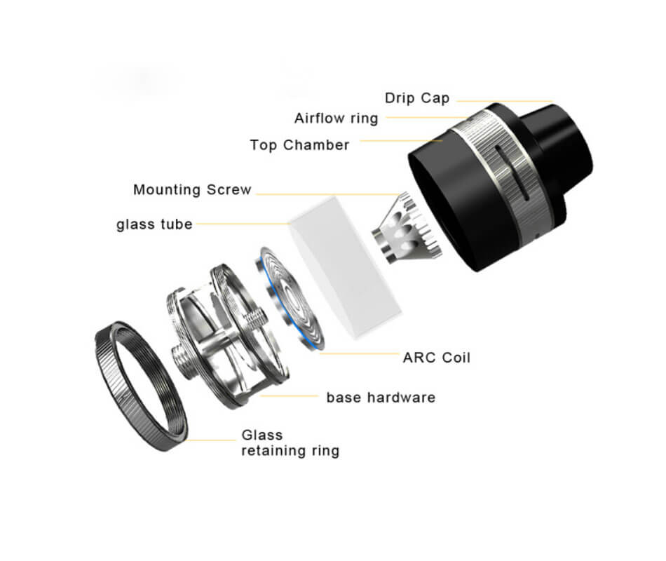 Auch der Revvo Boost nutzt die einzigarten und absolut neuartigen Horizontal – Verdampfer – Köpfe. Die flachen ARC – Coils in Scheibenform haben einen Widerstand von 0.1 Ohm bis 0.14 Ohm (70W – 80W). Aufgrund der Oberflächenvergrößerung wird das Liquid besser aufgenommen und durch die gleichmäßige Hitzeverteilung wird optimal verdampft, was der Geschmacks – und Dampfentwicklung zu Gute kommt. Auch das Austasuchen der Verdampferköpfe ist ein Kinderspiel und kann sogar bei vollem Tank vonstatten gehen.