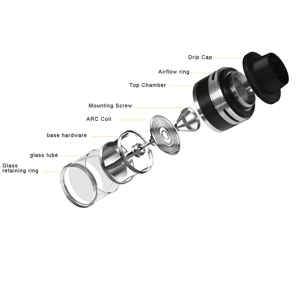 Das Herzstück des Verdampfers ist ganz klar das von Aspire revolutionierte Verdampferkopf Design. Die flachen und vertikalen ARC (Aspire Radial Coils) Köpfe (0.23Ohm – 0.28Ohm) werden vollflächig über den 2ml Tank angebracht, wodurch die Oberfläche vergrößert wird und so optimal das Liquid aufnehmen kann.