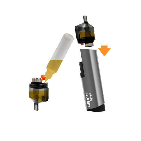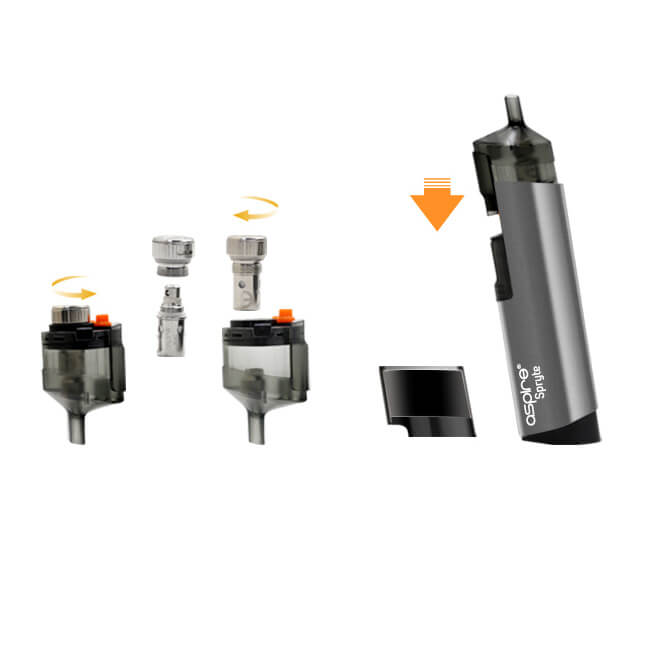 Das Spryte-System wird mit einem wiederbefüllabem Pod genutzt. Dieser hat ein Tankvolmen von 3.5ml, welches von unten mit Liquid befüllt wird. Dazu wird die Cartridge vom Mod entfernt und der gummierte Stöpsel geöffnet. Nach der Befüllung wieder gut verschließen und die Tankpatrone erneut einsetzen.