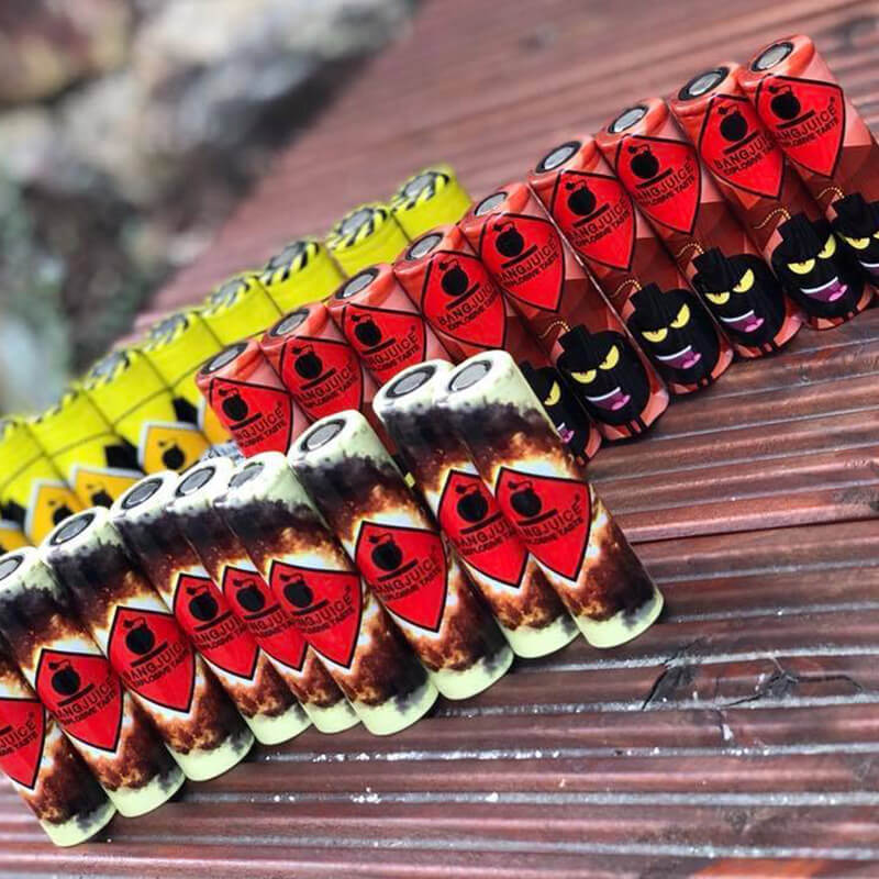 - 6x 18650 Schrumpfschlauch (3 verschiedene Bang Juice Motive)