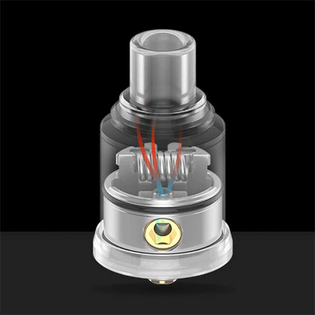Ein Highlight des Tröpflers ist die neue, nicht verstellbare Airflow. Diese befindet sich unterhalb des Coils und wird in ihrer Zugintensität durch das verwendete Modul beeinflusst. Die Festigkeit des Zugs bestimmt demnach das eingebaute Modul der Airflow und variiert von einem bis zu drei Luftlöchern. Der stramme Zug ist perfekt für das MTL-Dampfen.