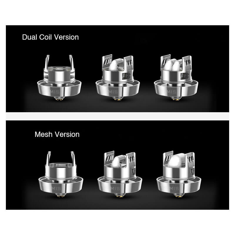 Der Themis RTA kann je nach Wunsch mit einem Postless-Deck für Single – und Dualcoils oder mit einem postless Mesh - Wire - Deck erworben werden. Worauf die Wahl auch fällt, beide Decks fallen großzügig aus, so dass das Bestücken von auch üppigeren Wicklungen problemlos machbar ist. Das Bauen mit Mesh – Wires ist besonders simpel und schnell getan.