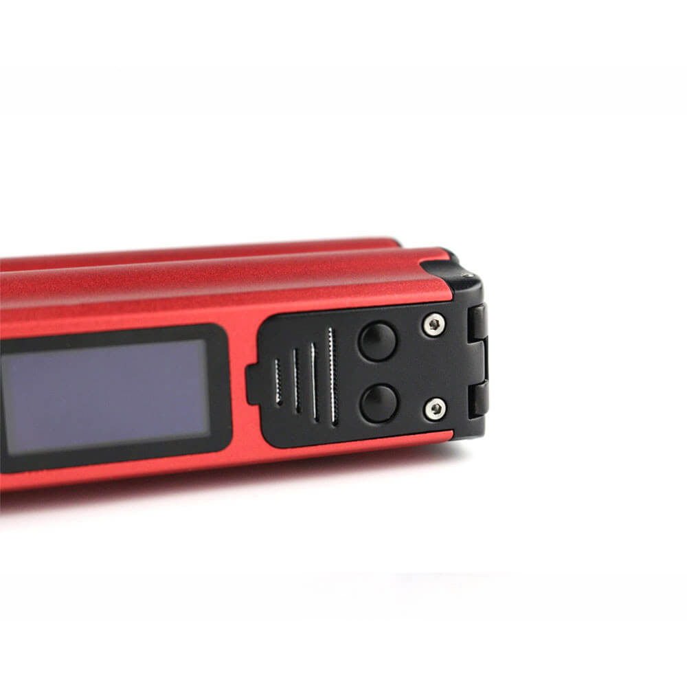 Beim Topside kann im VW / TC / Bypass-Modus gearbeitet werden. Alle Informationen lassen sich anstandslos vom 0.96 Zoll Display ablesen. Unterhalb des Screens befinden sich gut erreichbar die Tasten, mit denen alle Funktionen frei einstellbar sind. Der große Feuerknopf liegt in einer angemessenen Reichweite, wodurch der Umgang mit diesem Mod leicht von der Hand geht.