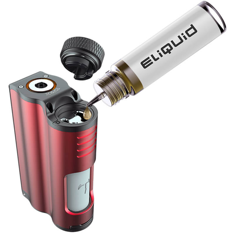 Die umweltfreundliche softe Silikon-Squonker-Flasche fasst ein Volumen von 10ml und lässt sich einfach eindrücken und schnell befüllen. Entweder in dem man sie sie wie gewohnt dem Mod entnimmt, oder, deutlich bequemer, durch das Topfilling, nachdem die Cap geöffnet wurde. Dies stellt bei Squonker Boxen eine absolute Weltneuheit dar.