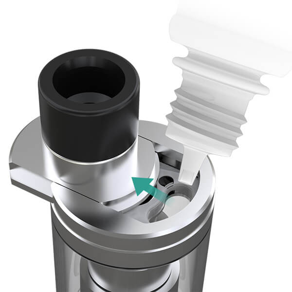 Der Melo RT 22 Verdampfer ist der perfekte Partner für die Aster RT! Mit seinem 22mm Durchmesser hat er nicht nur einen optimalen Sitz in der Aster RT, der neu entwickelte ER Verdampferkopf mit 0.3 Ohm aus Edelstahl (SS316) ist für Leistungen bis 100 Watt ausgelegt und zusätzlich auch im Temperaturmodus nutzbar. Der Melo RT 22 besitzt zudem ein neuartiges Befüllsystem, das sogenannte Retractable Top Fill System. Bei diesem System wird zum Befüllen einfach nur die Topcap beiseite geschoben, was auch ein leichtes Nachfüllen unterwegs ermöglicht.