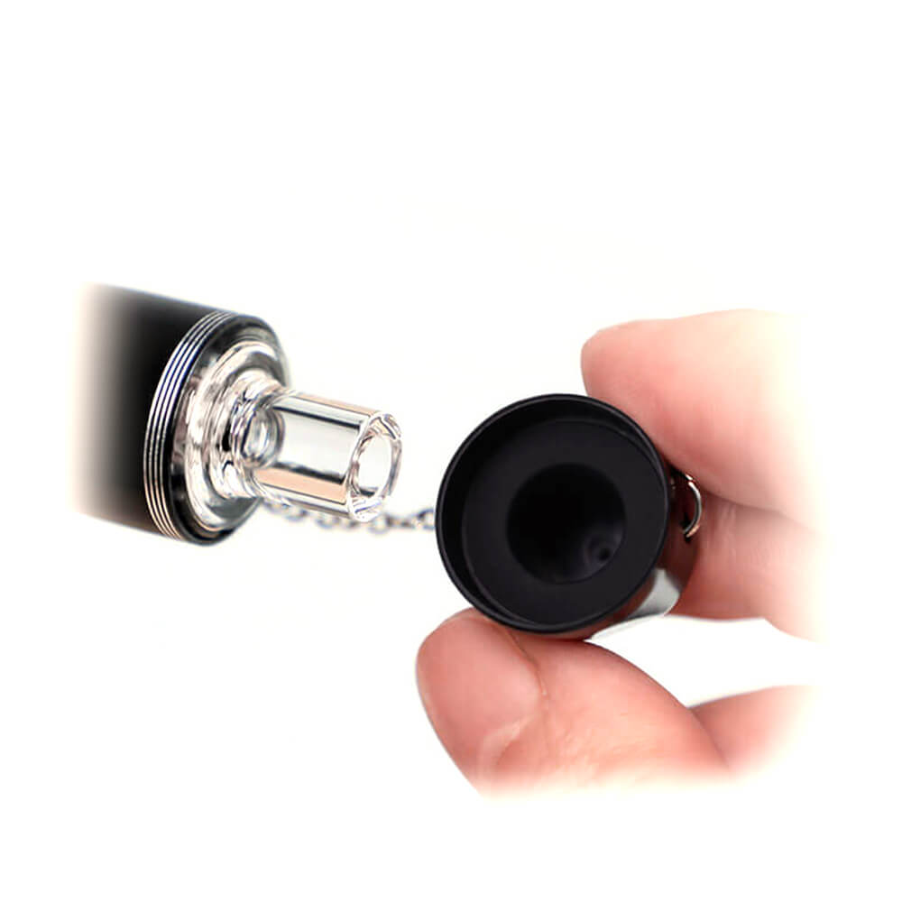 Das Tankvolumen des Pods beträgt 1.8ml und kann stets von der Seite (nach dem Öffnen des Silikonstöpsels) wiederbefüllt werden. Er wird vollständig in den Pen eingesetzt (hält magnetisch) und ist so vor Brüchen und Kratzern geschützt. Lediglich das 510er Mundstück schaut noch heraus. Da dieses auch aus Glas besteht, gehört eine Kappe mit zum Kit, so ist er sicher und auch Verunreinigungen sind kein Thema mehr. Die stylische Kette ist zu einem ein dekorativer Hingucker und zum anderen verhindert sie, dass die Abdeckung verloren geht.