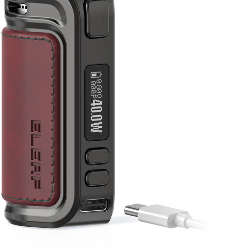 Ein 1500mAh Akku befindet sich im Inneren und treibt das Gerät mit einer Ausgangsleistung zwischen 1W und 40W, bei einem Widerstandsbereich von 0.2 Ohm-3.0 Ohm an. Das Aufladen der Batterie erfolgt in nur 40 Minuten über das 2A USB-C Ladekabel.