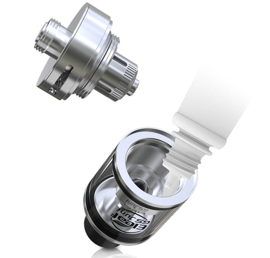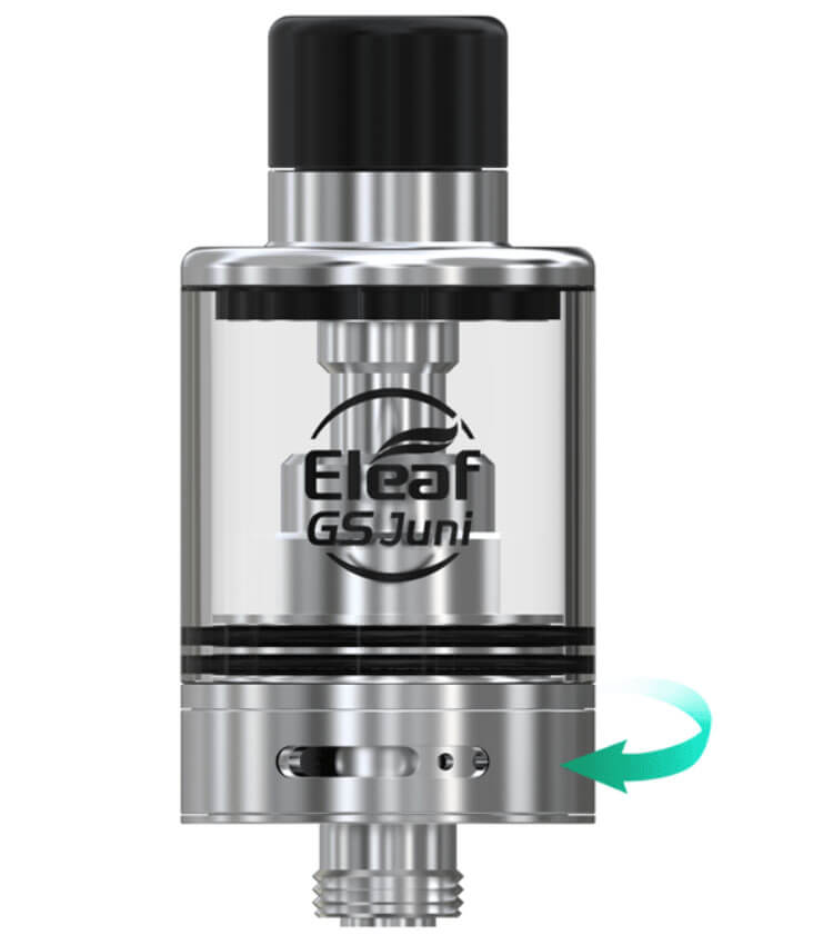 Ultimativ vervollständigt wird dieser Mod durch den bemerkenswerten GS Juni Verdampfer mit seinem Fassungsvermögen von 2ml, das durch die Öffnung im Boden, nach Beseitigung der Base befüllt wird. Ein Airflow - Kontroll – Ring kann nach Belieben ausgerichtet werden, so dass eine perfekte Luftzirkulation zu Stande kommt, was ein wahres Geschmackserlebnis für alle Backendampfer (MtL) hervorruft. Mit einem Widerstand von 0.75 Ohm bis 1.5 Ohm kommen die im GS Juni verwendeten Verdampferköpfe zum Einsatz. Diese offerieren auch bei niedriger Wattleistung exzellenten Geschmack und einen festen Zug.
