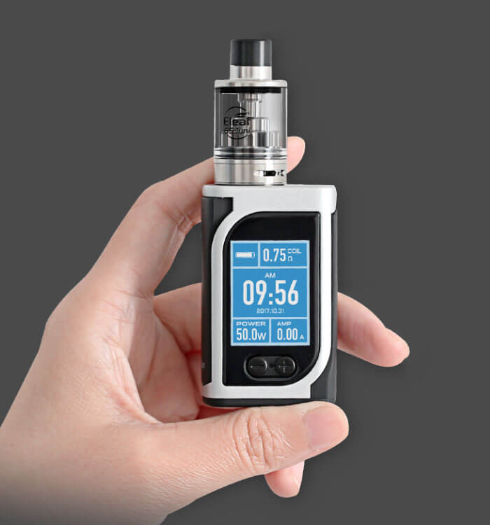 Von der unscheinbaren Größe des Sets sollte man sich nicht negativ beeinflussen lassen, denn in dem kleinen iStick Kiya Mod steckt eine beachtliche Technik, angefangen bei dem eingebautem 1600mAh Akku und einer Ausgangsleistung bis zu 50W (100°c – 315°c). Trotz der Mini Größe wurde gekonnt ein 1.45 Zoll großes Display eingefügt, welches über ein neues, helleres Interface verfügt und die perfekte Einsicht auf alle hinterlegten Werte bietet. Die Bedienung gestaltet sich besonders angenehm und einfach und das Aufladen des Akkus wird über den Micro USB Port mit dem Temperatur geschütztem 2A Ladestrom geladen. Gearbeitet wird VW / Bypass / TC (Ni, Ti, SS, TCR - M1, M2, M3) Modus.