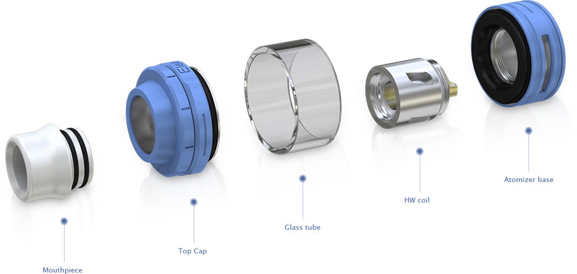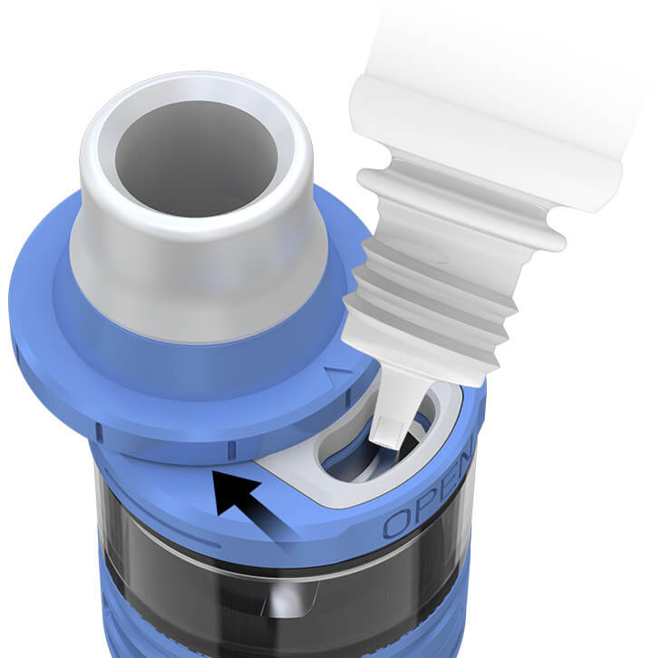 Der Ello Verdampfer besitzt ein Tankvolumen von 2ml und ist ganz leicht von oben befüllbar (Retractable Topfill). Dazu schiebt man einfach die obere Kappe des Verdampfers zur Seite und füllt das Liquid in die dafür vorgesehene Öffnung.
