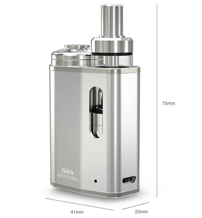 Das iStick Pico Baby Set ist ein außergewöhnlich kleines Vape-Kit, dass mit seinen abgerundeten Ecken und dem metallischem Look ordentlich was hermacht und absolut zu empfehlen ist.
