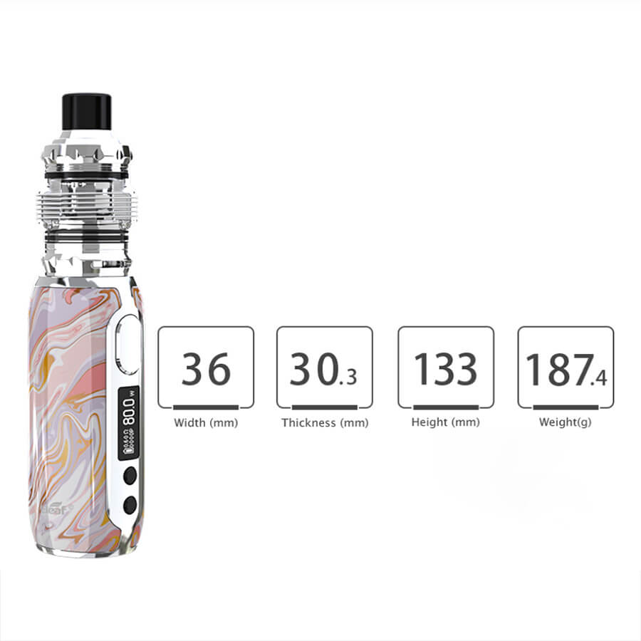 Mit dem iStick Rim wurde ein weiteres kreatives E-Zigarettenkit geschaffen, welches sich sowohl auf dem neuesten Stand der Technik befindet, als auch optisch ordentlich was hermacht. Es bekam eine handliche Größe von 133mm x 36mm x 30.3mm und wiegt 187.4g. Durch die IML-Technologie (In Molding Label / Oberflächentechnologie) sind die Farben heller, kräftiger und langlebiger. Zusätzlich erhielt das iStick Rim Kit von Eleaf ein brillantes Hochglanz-Finish, für einen besonders edlen Look.
