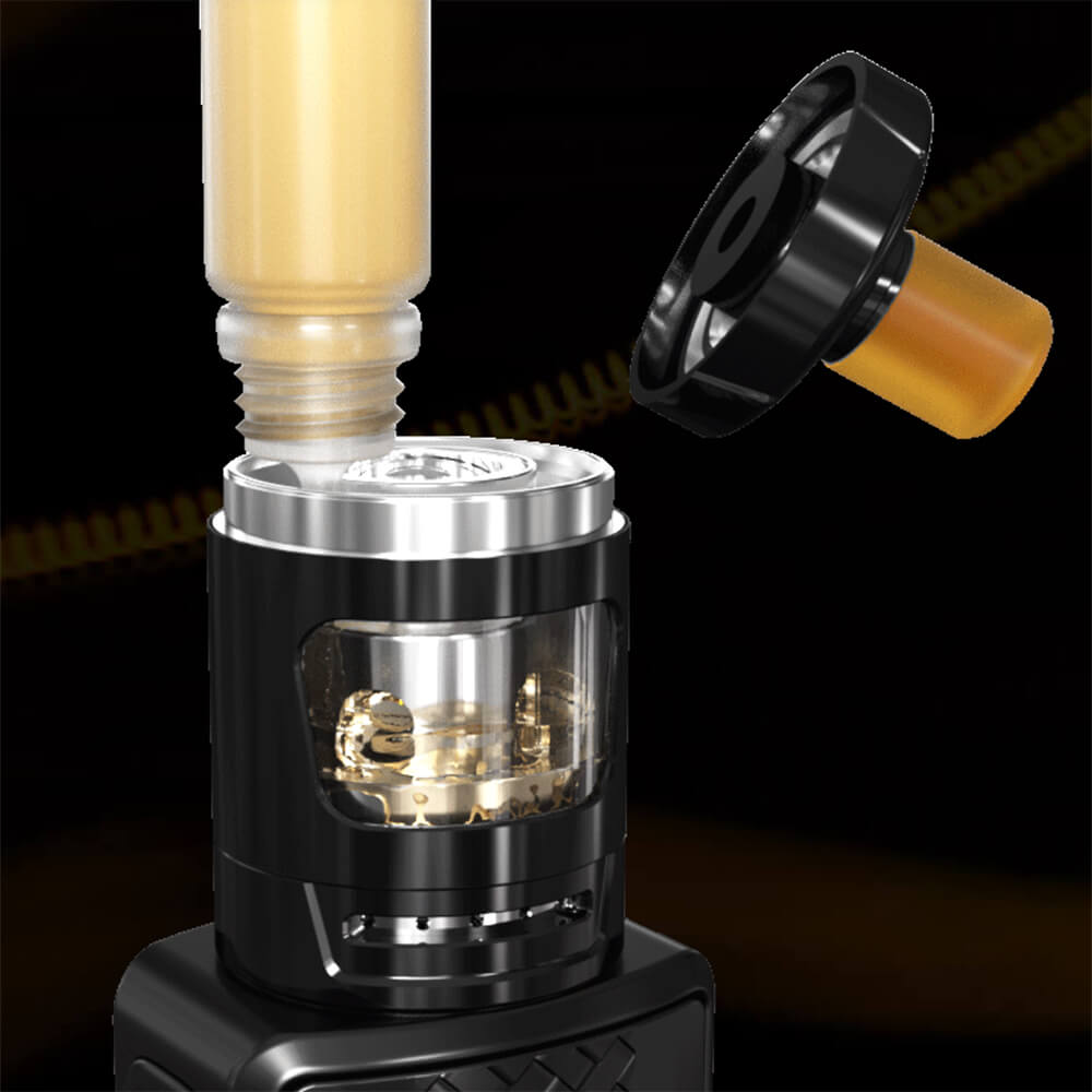 Der iStick S80 Mod ist mit seinen Verzierungen schon eine echte Augenweide, was durch den GZeno Tank, mit dem er kombiniert wurde, nochmals untermauert wird. Der Verdampfer bringt ein 3ml Tankvolumen mit, welches via Topfill aufgefüllt wird. Auch die MTL Verdampferköpfe (1.2 Ohm / 7W-13W) sind im Handumdrehen ausgetauscht. Mit der Bottom Airflow kann der Luftzug geregelt werden.