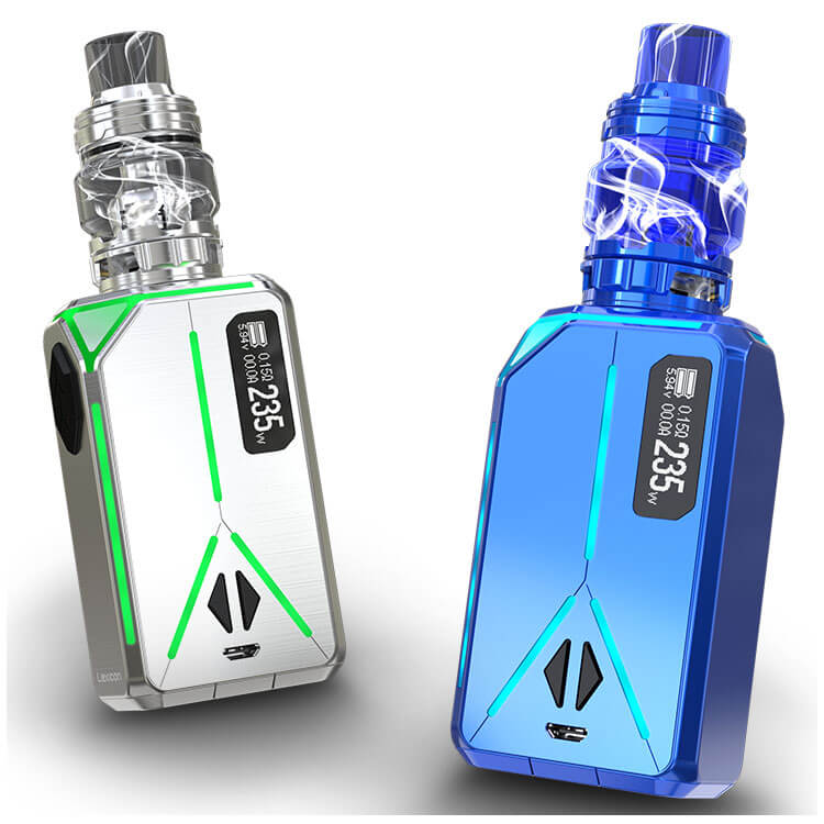 Der Lexicon Mod fällt einem sofort ins Auge. Der futuristische Stil ist geschmackvoll gestaltet. Neben den sorglich ausgewählten Farben prägt besonders die LED Light Show das Erscheinungsbild. Man hat die Möglichkeit das LED Licht leuchten oder blinken zulassen. Natürlich kann man es auch ausschalten, mag man es eher dezenter. Fügt man dem Akkuträger noch zusätzlich 2x 18650er Batterien zu, kann er bis zu 235W und 0.5V – 8V abgeben. Der Widerstandbereich reicht von 0.05Ohm – 3Ohm im VW Modus und von 0.05Ohm – 1.5Ohm im TC Modus. Wer seine genutzten Parameter erfahren möchte, der erhält alle Information über den kleinen OLED Bildschirm. Auf der vorderen Seite befinden sich zwei Up - / Down – Taster, die zur Steuerung des Menüs benötigt werden. Auch der USB Port wurde frei zugänglich auf der Frontseite platziert. Über diesen werden die verbrauchten Zellen wieder geladen. Die Sicherheit des Lexicon Mods wurde ebenfalls nicht außer Acht gelassen, so wurde ihm ein Multischutz zugefügt.