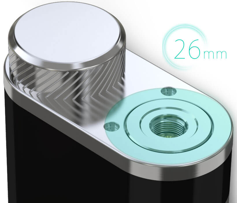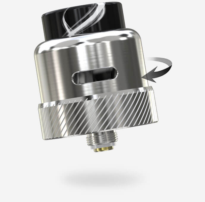 Die speziell entwickelte Airflow kann nach Wunsch präzise ausgerichtet werden und wurde so konzipiert, dass der Luftstrom ohne Umwege direkt auf die DIY – Wicklung trifft. Dadurch entfaltet sich feiner und angenehmer Geschmack und riesige Dampf - Wolken.
