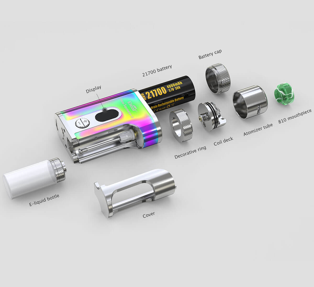 Der Pico Squeeze 2 ist die neuere und optimiertere Version des bereits erfolgreichen Pico Squeeze und wird mit einem 21700er oder einem 18650er (mithilfe eines Adapters) Akku betrieben. Er bietet eine regelbare Leistung bis zu 100 Watt. Mittels einer 2A Ladegeschwindigkeit ist die verbrauchte Kapazität schnell wieder aufgeladen und der Akku erneut einsatzbereit. Das Batteriefach bekam einige Bodenbelüftungslöcher, um ein Überhitzen zu vermeiden.