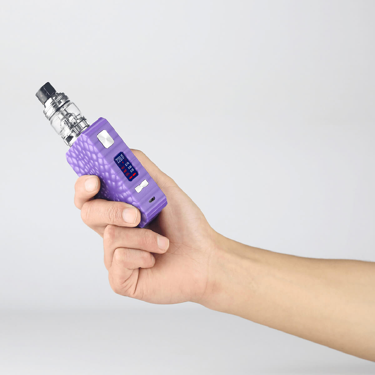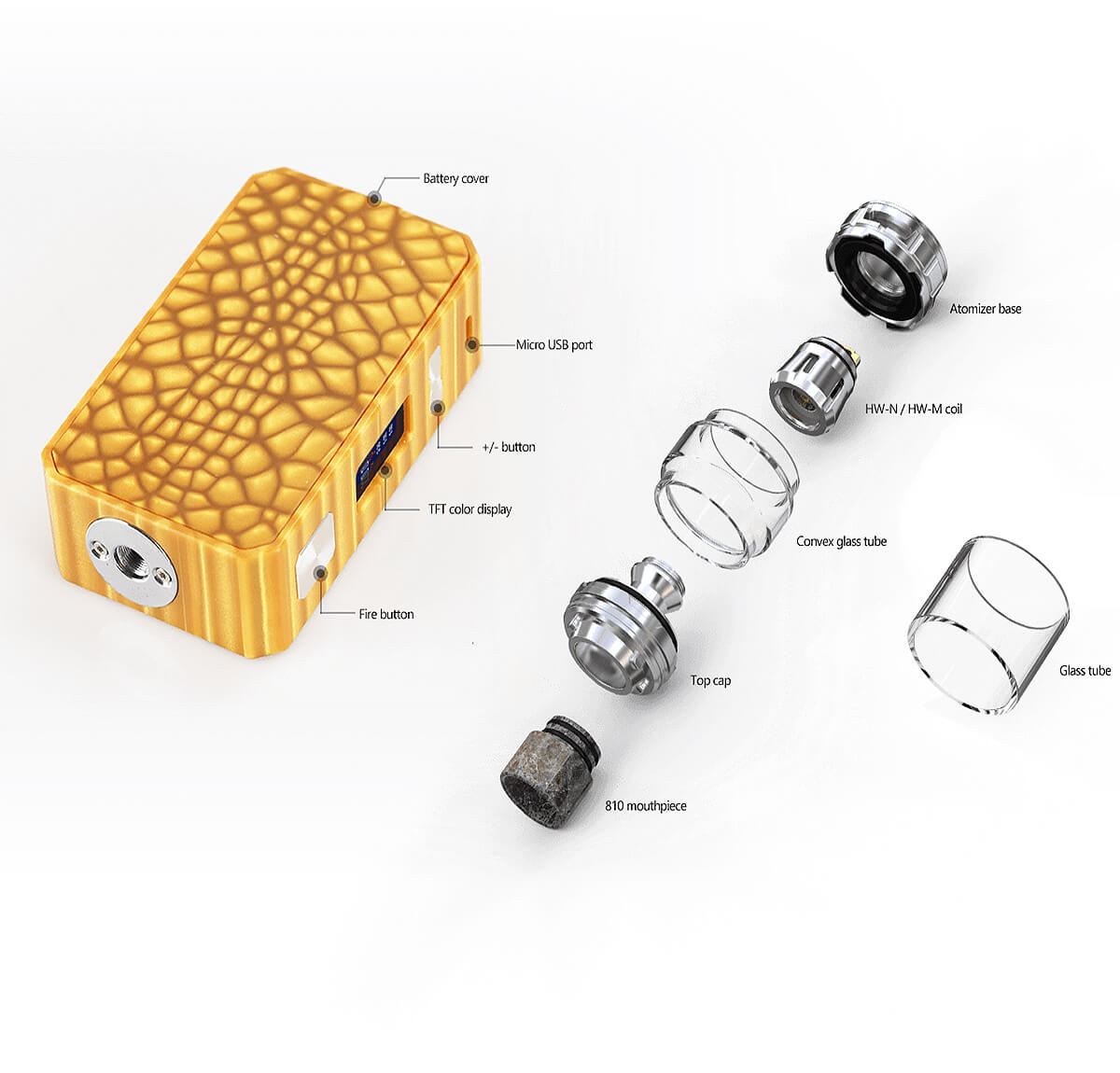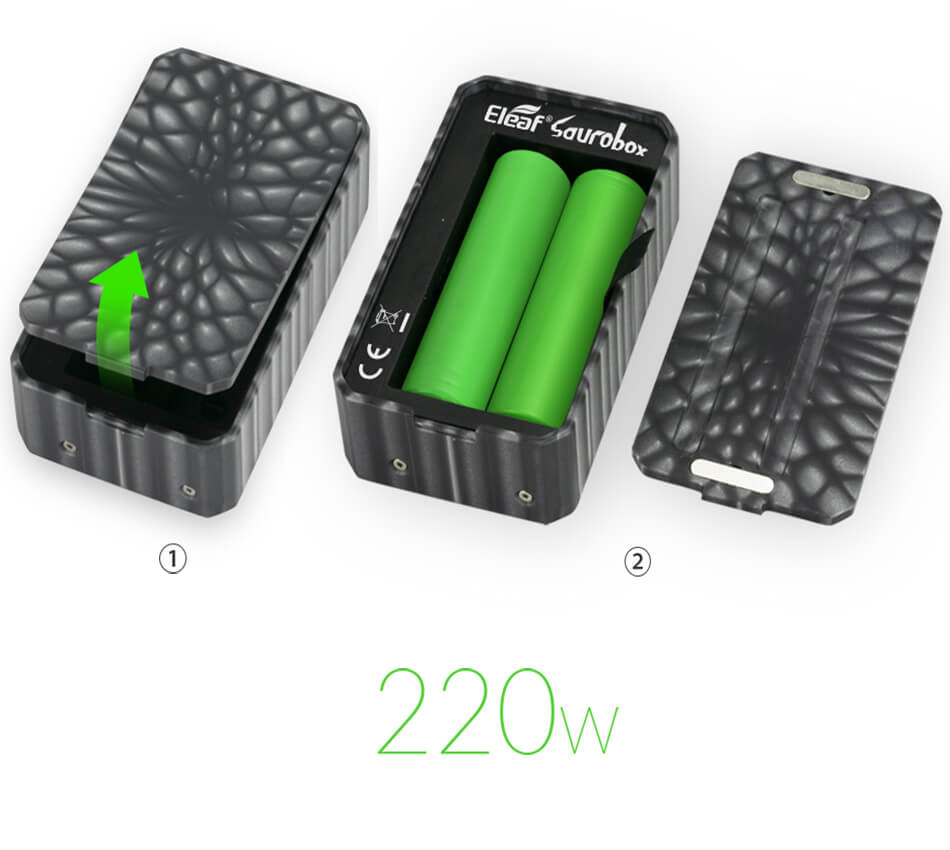 Der Akkuträger wird mit zwei 18650er Batterien betrieben, was einen zusätzlichen Kauf erfordert. Sind die Zellen eingesetzt kann der Mod bis zu 220 Watt abgeben. Gearbeitet wird dabei im VW-Modus (0.1Ω-3.0Ω) oder im TC-Modus (0.05Ω-1.5Ω). Das 0.96 Zoll-TFT-Farbdisplay bietet ein klares und helles Bild und lässt alle Werte gut ablesen. Die Steuerung durch das Menü ist selbsterklärend und komfortabel zu bedienen. Alle Taster sind gut erreichbar und lassen sich leicht drücken. Das modern gestaltete Design besteht aus einem neuen speziellen Material aus Harz, welches extrem leicht und somit bequem zu handhaben ist. Eleaf bietet seinen Kunden zusätzlich ein nettes Mix and Match Gimmick an. Die magnetische Verkleidung kann nach Lust und Laune ausgetauscht und farblich angepasst werden. Die 2A Schnelllade – und Balanceladefunktionen sind zwei weitere nennenswerte Features.
