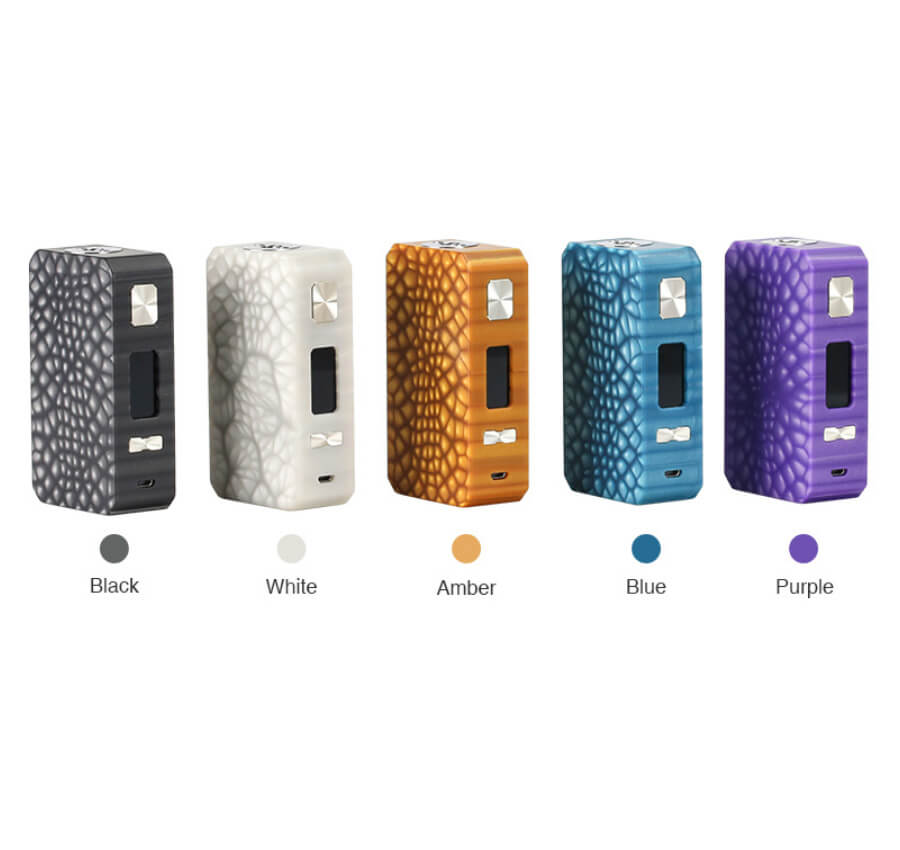 Eleafs Saurobox ist mit zahlreichen Verdampfern, mit dem passenden 510er Anschluss kominierbar und in den Farben Weiß, Schwarz, Blau, Amber und Lila erhältlich.