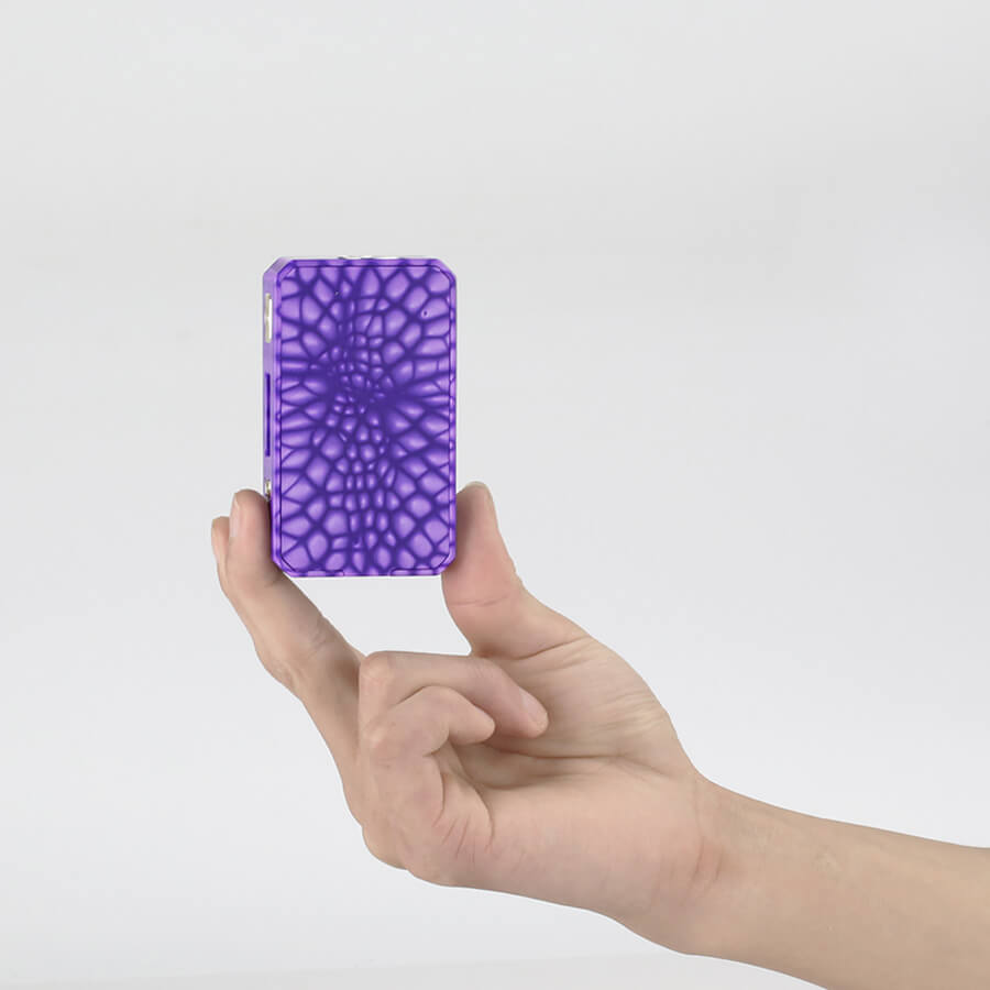 Eleafs Saurobox verfügt über ein auffälliges und zeitgemäßes Design, welches aus einem speziellen Harz-Material besteht. Dieses ist besonders leicht, was den Mod sehr handlich und ihn zu einem perfekten Begleiter macht. Er ist 89mm x 52mm x 26mm groß und sauber verarbeitet. Ein Highlight ist das Mix and Match. Die Verkleidung kann auf Wunsch und nach persönlicher Vorliebe ausgetauscht und verändert werden. Das gelingt spielend einfach, da ein Magnet-Mechanismus diese befestigt und die Beschalung nur aufgesteckt werden muss.