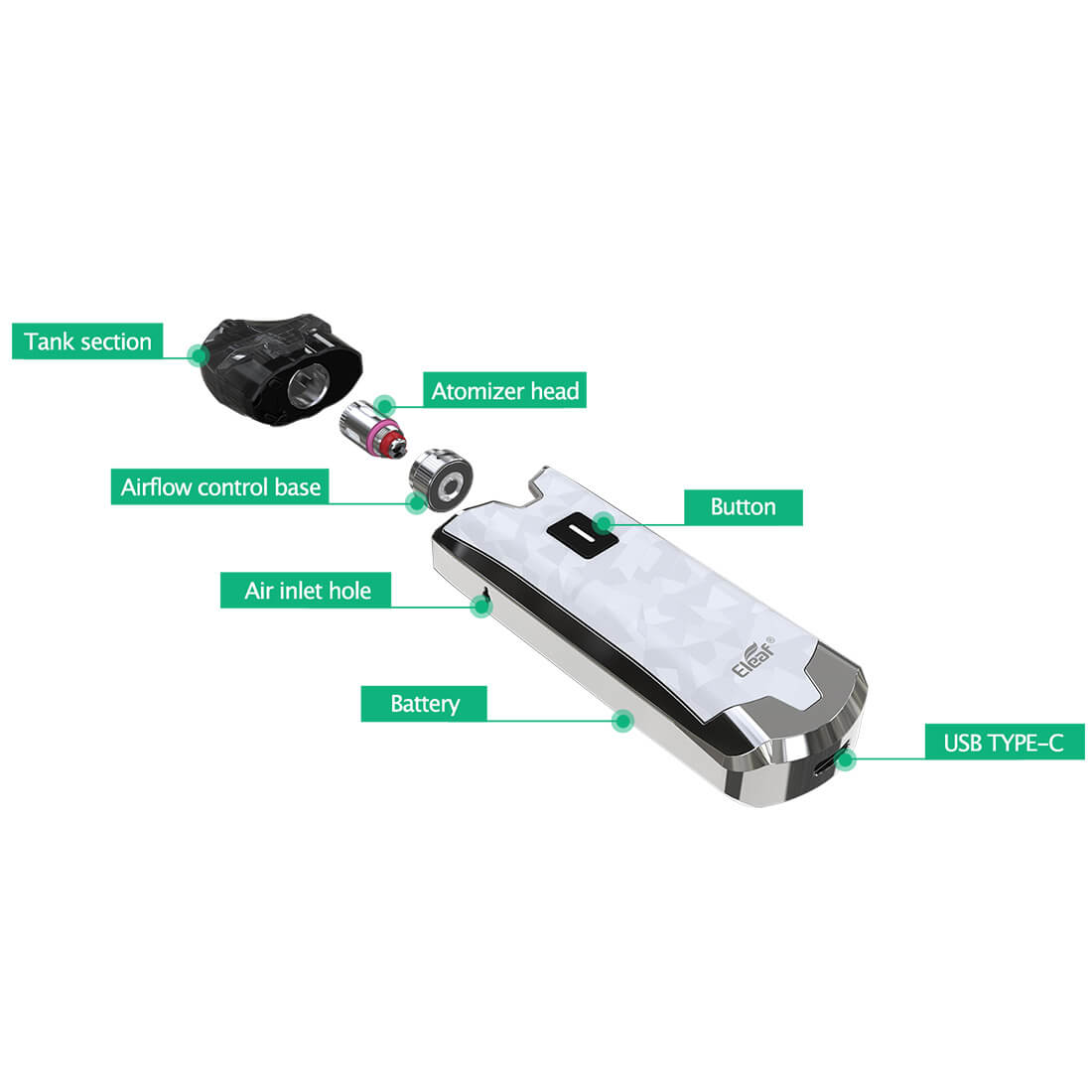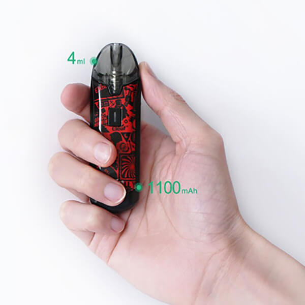 Auch hier wurde an die einfache Handhabung gedacht, so dass lediglich ein Knopf für die komplette Bedienung ausreicht und so ein entspanntes Vapen ermöglicht. Die max. Ausgangsleistung beträgt 15 Watt, bei einem Widerstand von 0.3 Ohm-3.0 Ohm. Die seitlichen Luftlöcher sorgen für den nötigen Luftzug, welcher an der Base des Pods individuell eingestellt werden kann