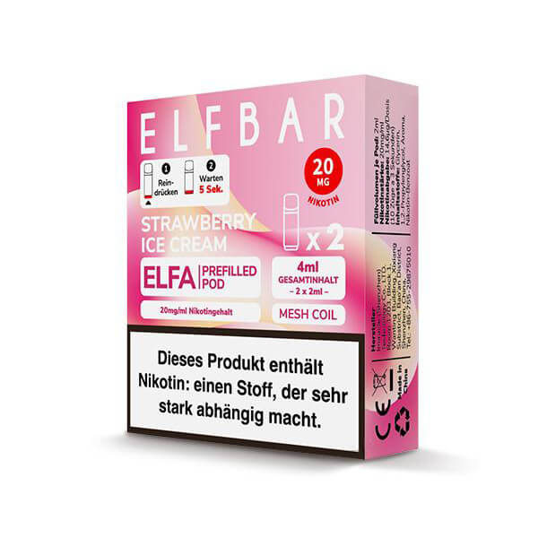 - 2 x Elf Bar ELFA Pod Strawberry Ice Cream