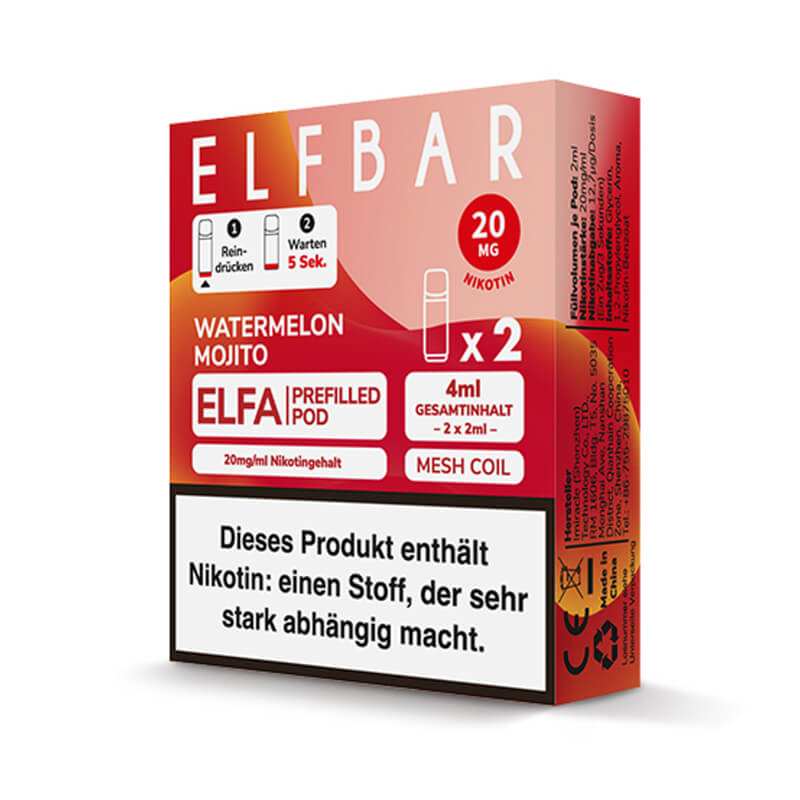 - 2 x Elf Bar ELFA Pod Watermelon Mojito
