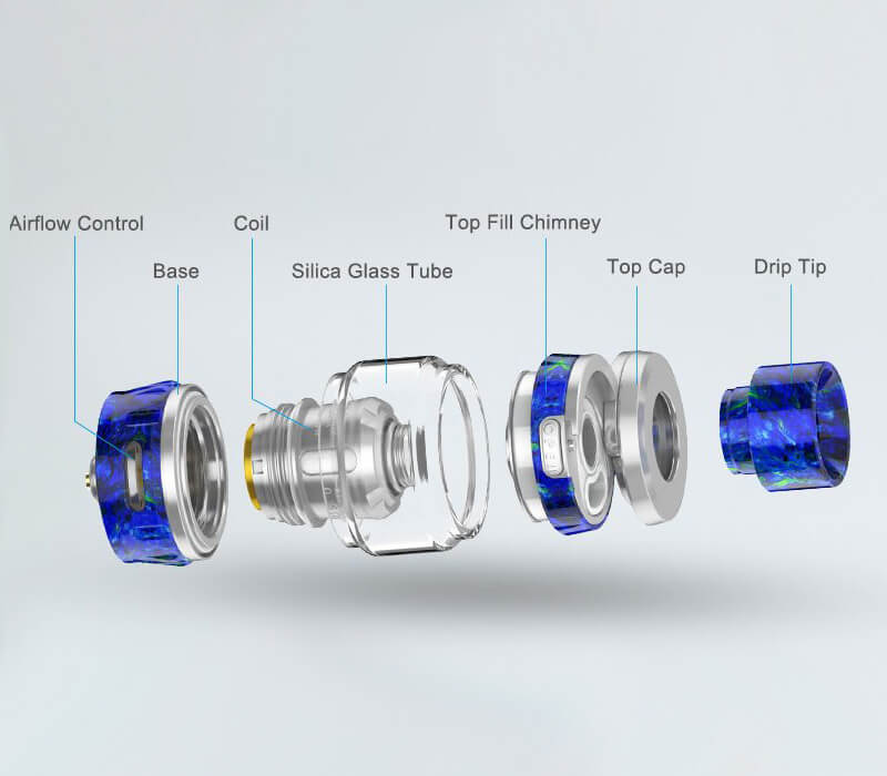 Er ist ein innovativer und leistungsfähiger Subohm-Tank, dessen Design aus einem Harz Material besteht, von dem er sich visuell von anderen Verdampfern deutlich abhebt. Die komfortable Größe von 41mm x 25mm macht das Handling besonders angenehm.