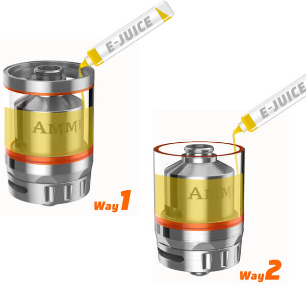 Dem Set liegen zwei verschiedene Glastanks bei, einer mit 3ml und einer mit 6ml. Das 6ml Glass Tube kann mittels beiliegendem Adapter verwendet werden. Nicht nur beim Tankvolumen, auch bei der Befüllmethode stehen zwei verschiedene Optionen zur Auswahl. Beide Methoden finden von oben über die abschraubbare Topcap statt.
