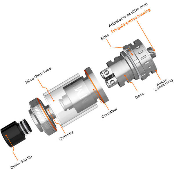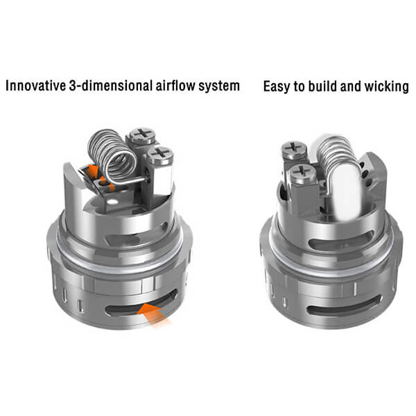 Durch die Single Wicklung bleibt der Liquidverbrauch beim Ammit im humanen Bereich und die dreidimensionale Luftführung sorgt für eine gute Geschmacksqualität. Die Airflow Control lässt sich stufenweise einstellen und rastet an der gewünschten Position ein, was ein versehentliches Verstellen verhindert. Das Drip Tip besitzt einen 510-er Anschluss und ist somit austauschbar. Der Verdampfer lässt sich komplett in seine Einzelteile zerlegen, was für eine Reinigung sehr hilfreich ist.