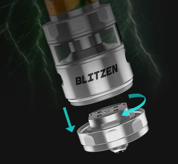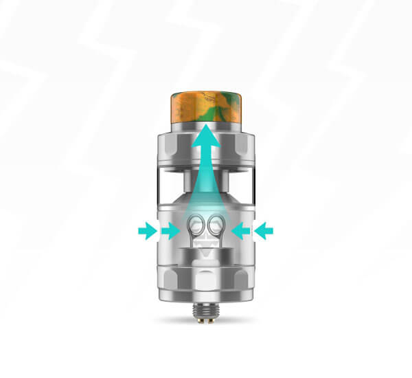 Die Luftzufuhr kommt bei dem Blitzen von der Seite und kann nach Belieben ausgerichtet werden. Die Coils werden optimal von der kühlen Luft umgeben, was die Entfaltung des Geschmacks positiv beeinflusst.