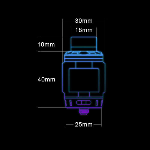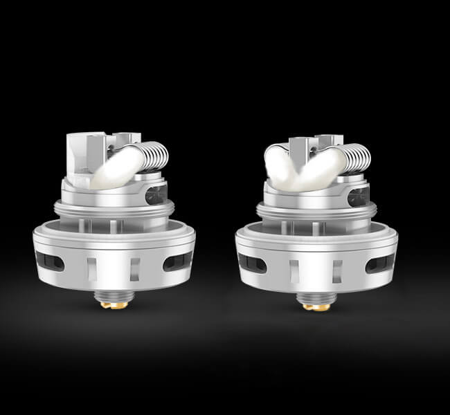 Der RTA verfügt über die kompakte Größe 50mm x 25mm und macht auf größeren Boxen ordentlich was her. Das 510er Gewinde erhöht die Kombinierbarkeit immens.